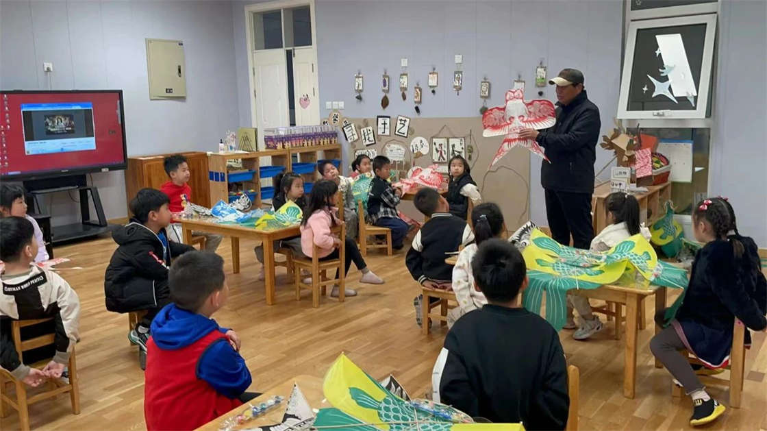 4月3日,徐州文化馆邀请“徐州风筝”市级非遗代表性传承人钟义臣老师来到徐州市第二实验幼儿园,和小朋友一起制作风筝。
